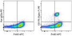 Staining of mouse thioglycolate-elicited peritoneal exudate cells with Anti-Mouse F4/80 Antigen APC (Product # 17-4801-82) and 0.03 µg of Rat IgG2a K Isotype Control PE (Product # 12-4321-80) (left) or 0.03 µg of Anti-Mouse CD170 (Siglec F) PE (right). Total viable cells, as determined by Fixable Viability Dye eFluor® 450 (Product # 65-0863-14), were used for analysis. {{ $ctrl.currentElement.advancedVerification.fullName }} 验证信息 View more