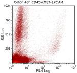 CD45 (LCA, leukocyte common antigen) is a receptor-type protein tyrosine phosphatase (PTP) ubiquitously expressed in all nucleated hematopoietic cells, comprising approximately 10% of all surface proteins in lymphocytes. CD45 is absent on non-hematopoietic cell lines, normal and malignant, non-hematopoietic tissues. CD45 glycoprotein is crucial in lymphocyte development and antigen signaling, serving as an important regulator of Src-family kinases. CD45 protein exists as multiple isoforms as a result of alternative splicing, differ in their extracellular domains but share identical transmembrane and cytoplasmic domains. CD45RA is an isoform of the CD45 complex and has restricted expression between different subtypes of lymphoid cells. CD45 isoforms differ in their ability to translocate into the glycosphingolipid-enriched membrane domains and their expression depends on cell type and physiological state of the cell. CD45 has been shown to be an essential regulator of T- and B-cell antigen receptor signaling and suppresses JAK kinases to regulate cytokine receptor signaling. CD45 is also important in promoting cell survival by modulating integrin-mediated signal transduction pathway, DNA fragmentation during apoptosis and inhibition or upregulation of various immunological functions.