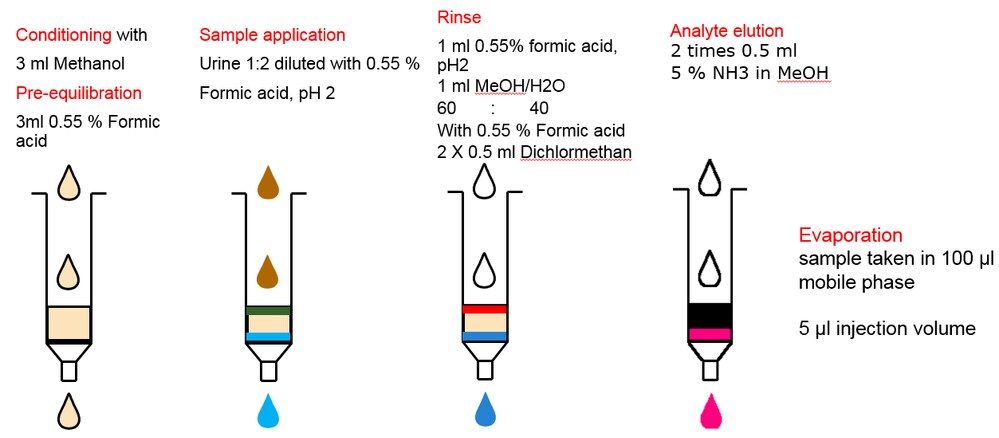 The advantage of a polymer is the low pH in which it can be used. For the determination of Fentanyl and Norfentanyl, different SPE cleanup steps were tested.