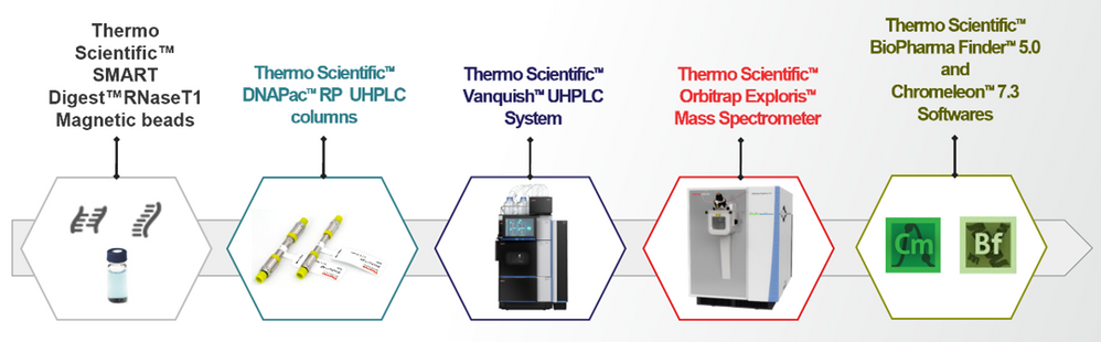 The Role of HPLC in mRNA Analysis. This exclusive workshop sponsored by Thermo Fisher Scientific was given by Jacob Fairchild from Moderna Therapeutics. There was a line out the door and around the building to get into this discussion! My personal highlight was when Dr. Fairchild talked about how Moderna and their CDMOs (contract development and manufacturing organizations) have implemented DNAPac RP columns and standardized on the Vanquish UHPLC systems and Thermo Scientific™ Chromeleon™ Chromatography Data System (CDS) platform.- Optimization of mRNA Sequence Analysis by UHPLC/HRMS. As I stated above, you can see the focus was on mRNA at this conference. Ken Cook (Thermo Fisher Scientific, Hemel Hempstead, England) led the presentation, which highlighted how the workflow for mRNA sequencing uses ultramodern techniques and equipment that would be difficult-to-impossible to replace with alternative technology (this is exceedingly rare for a workflow).Check out the hardware and software for oligonucleotide analysis below: