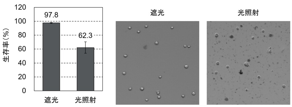 図3. 光照射によるトリパンブルーの沈殿による生存率の測定への影響