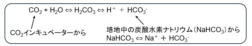 図1. 細胞培養における炭酸-重炭酸緩衝系