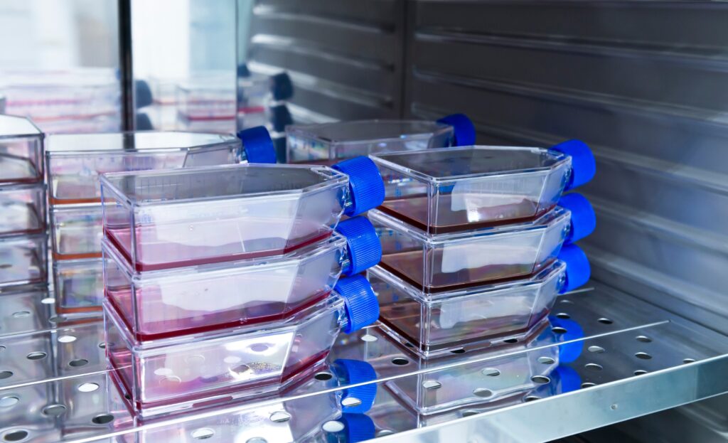 細胞を含んだフラスコやディッシュを中に置いておき、培養するために使用します。つまり、細胞たちはほとんどの時間をCO2インキュベーターの中で過ごすことになります。