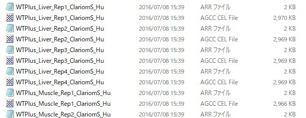 zipファイルの中には「AGCC CEL File」と「ARRファイル」という2種類のファイルが入っています。このうち、解析に使うのは「AGCC CEL File」です。