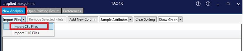 TACを立ち上げ、「New Analysis」のタブから「Import CEL Files」を選択します。
