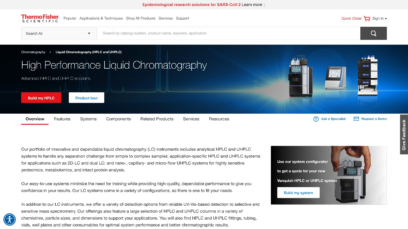 To empower your buying experience, we modernized the process for building instruments online. Our new configurator tool is easy to use and lets you build your own HPLC and add everything you might need for your system—HPLC accessories, columns, vials, solvents, software, and service plans. Using the tool, you can compare attributes and choose key components, and when you’re finished you can submit your personalized quote request. https://www.thermofisher.com/store/instruments/configurators/hplc