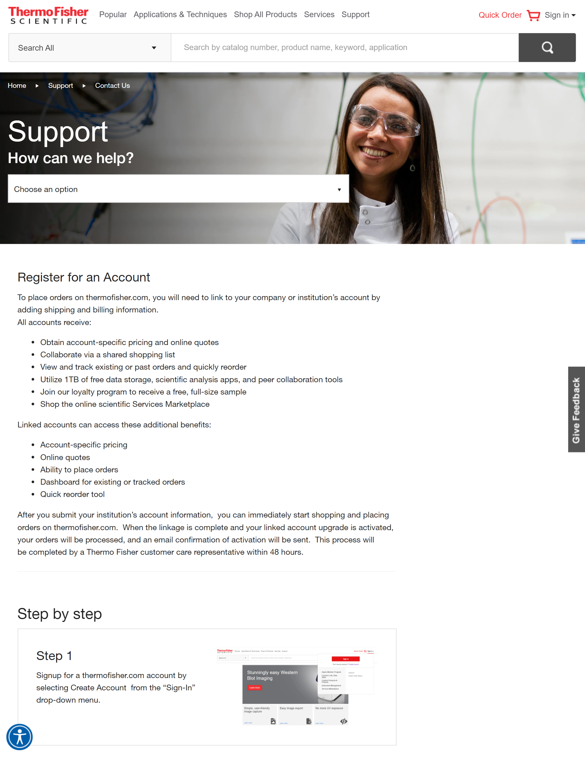 With this in mind, we have created a new, streamlined, customer-support experience to help you save valuable time—so you can focus on science. Just as ordering on thermofisher.com provides a fast, convenient, and customized experience, our new support center has been reimagined to help you get back to the work that matters most.