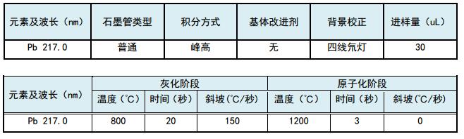 采用石墨炉原子吸收法测定Pb,参数设置及石墨炉升温程序: