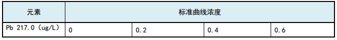 分析方法: 采用 Pb 国家标准物质水溶液,做标准工作曲线,计算样品中含量。