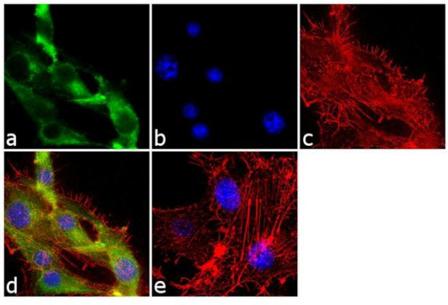 Immunofluorescence analysis of Adrenocorticotropic Hormone was performed using 70% confluent log phase U-87 MG cells. The cells were fixed with 4% paraformaldehyde for 10 minutes, permeabilized with 0.1% Triton™ X-100 for 10 minutes, and blocked with 1% BSA for 1 hour at room temperature. The cells were labeled with Adrenocorticotropic Hormone (9H5L7) Recombinant Rabbit Monoclonal Antibody (Product # 701293) at 2 µg/mL in 0.1% BSA and incubated for 3 hours at room temperature and then labeled with Goat anti-Rabbit IgG (Heavy Chain) Supercl... View More {{ $ctrl.currentElement.advancedVerification.fullName }} 验证信息 View more