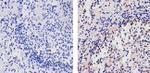 Immunohistochemistry analysis of AID showing staining in the cytoplasm and nucleus of paraffin-embedded human lymph node tissue (right) compared to a negative control without primary antibody (left). To expose target proteins, antigen retrieval was performed using 10mM sodium citrate (pH 6.0), microwaved for 8-15 min. Following antigen retrieval, tissues were blocked in 3% H2O2-methanol for 15 min at room t... View More {{ $ctrl.currentElement.advancedVerification.fullName }} 验证信息 View more