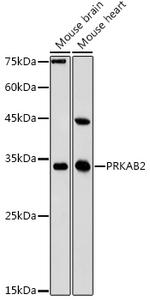 AMPK Beta 2 is a regulatory subunit of the AMP-activated protein kinase (AMPK). AMPK is a heterotrimer consisting of an alpha catalytic subunit, and non-catalytic beta and gamma subunits. AMPK is an important energy-sensing enzyme that monitors cellular energy status. In response to cellular metabolic stresses, AMPK is activated, and thus phosphorylates and inactivates acetyl-CoA carboxylase (ACC) and beta-hydroxy beta-methylglutaryl-CoA reductase (HMGCR), key enzymes involved in regulating de novo biosynthesis of fatty acid and cholesterol. This subunit may be a positive regulator of AMPK activity. The myristoylation and phosphorylation of this subunit have been shown to affect the enzyme activity and cellular localization of AMPK. This subunit may also serve as an adaptor molecule mediating the association of the AMPK complex.