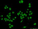 Immunofluorescent analysis of HeLa cells using 10843-1-AP (ANP32B antibody) at dilution of 1:50 and Alexa Fluor 488-conjugated AffiniPure Goat Anti-Rabbit IGG (H+L). {{ $ctrl.currentElement.advancedVerification.fullName }} 验证信息 View more