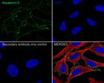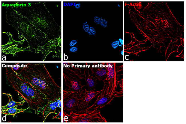 AQP3 is a water channel protein. Aquaporins are a family of small integral membrane proteins related to the major intrinsic protein (MIP or AQP0). Aquaporin 3 is localized at the basal lateral membranes of collecting duct cells in the kidney. In addition to its water channel function, aquaporin 3 has been found to facilitate the transport of nonionic small solutes such as urea and glycerol, but to a smaller degree. It has been suggested that water channels can be functionally heterogeneous and possess water and solute permeation mechanisms.