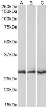 This antibody is tested in Peptide ELISA: antibody detection limit dilution 32,000.