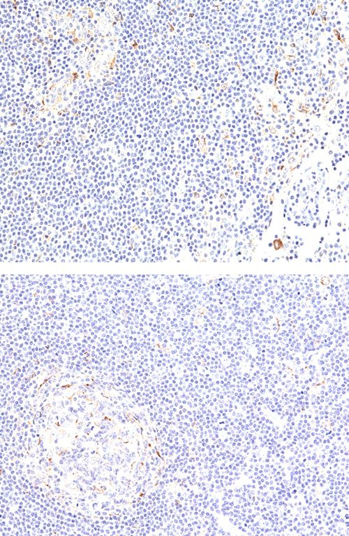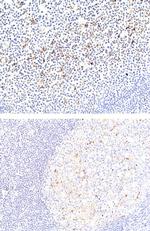 Immunohistochemistry (Paraffin) analysis of Hodgkins lymphoma tissue sections using CD137 recombinant monoclonal antibody (Product # MA562098) at 1:100 dilution. {{ $ctrl.currentElement.advancedVerification.fullName }} 验证信息 View more