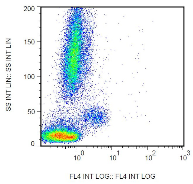 Flow cytometry (surface staining) of CD163 in human peripheral blood. Samples were stained with CD163 monoclonal antibody (Product # MA562218). {{ $ctrl.currentElement.advancedVerification.fullName }} 验证信息 View more