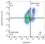 Flow cytometry (surface staining) of CD38 in human peripheral blood. Samples were stained with CD38 monoclonal antibody (Product # MA562312). {{ $ctrl.currentElement.advancedVerification.fullName }} 验证信息 View more