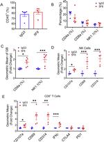 Fixation: Samples can be stored in IC Fixation Buffer (Product # 00-8222) (100 µL of cell sample + 100 µL of IC Fixation Buffer) or 1-step Fix/Lyse Solution (Product # 00-5333) for up to 3 days in the dark at 4°C with minimal impact on brightness and FRET efficiency/compensation. Some generalizations regarding fluorophore performance after fixation can be made, but clone specific performance should be determined empirically.