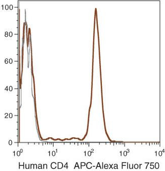 Human peripheral blood lymphocytes were stained using APC-Alexa Fluor® 750 of anti-human CD4 monoclonal antibody (clone S3.5). The negative control profiles represent unstained cells. {{ $ctrl.currentElement.advancedVerification.fullName }} 验证信息 View more