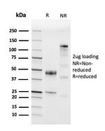 Immunohistochemistry (PFA fixed): incubate antibody for 30 min RT. Staining of formalin-fixed tissues requires heating tissue sections in 10mM Tris with 1mM EDTA, pH 9.0, for 45 min at 95 degrees C followed by cooling at RT for 20 minutes.