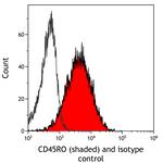 CD45 (LCA, leukocyte common antigen) is a receptor-type protein tyrosine phosphatase (PTP) ubiquitously expressed in all nucleated hematopoietic cells, comprising approximately 10% of all surface proteins in lymphocytes. CD45 is absent on non-hematopoietic cell lines, normal and malignant, non-hematopoietic tissues. CD45 glycoprotein is crucial in lymphocyte development and antigen signaling, serving as an important regulator of Src-family kinases. CD45 protein exists as multiple isoforms as a result of alternative splicing, differ in their extracellular domains but share identical transmembrane and cytoplasmic domains. CD45RA is an isoform of the CD45 complex and has restricted expression between different subtypes of lymphoid cells. CD45 isoforms differ in their ability to translocate into the glycosphingolipid-enriched membrane domains and their expression depends on cell type and physiological state of the cell. CD45 has been shown to be an essential regulator of T- and B-cell antigen receptor signaling and suppresses JAK kinases to regulate cytokine receptor signaling. CD45 is also important in promoting cell survival by modulating integrin-mediated signal transduction pathway, DNA fragmentation during apoptosis and inhibition or upregulation of various immunological functions.