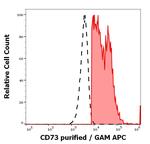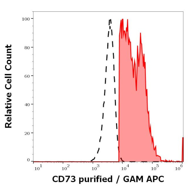 Flow cytometry (surface staining) of CD73 in human peripheral whole blood. Samples were incubated with CD73 monoclonal antibody (Product # MA562341) using a dilution of 0.6 µg/mL. Separation of human CD73 positive lymphocytes (red-filled) from neutrophil granulocytes (black-dashed). {{ $ctrl.currentElement.advancedVerification.fullName }} 验证信息 View more