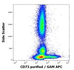 CD73, also known as Ecto-5-prime-nucleotidase or 5-prime-ribonucleotide phosphohydrolase, is an enzyme that catalyzes the conversion of purine 5-prime mononucleotides to nucleosides at neutral pH, with AMP as its preferred substrate. It is composed of a dimer of two identical 70 kDa subunits, externally bound to the plasma membrane via a glycosyl phosphatidyl inositol linkage. CD73 serves as a marker of lymphocyte differentiation and is expressed on a subset of lymphocytes, increasing during lymphocyte maturation. It is found on memory CD4 T cells, which resemble uncommitted primed precursor helper cells (Thpp) capable of differentiating into Th1 or Th2 cells, and is also present on regulatory T cells. CD73 deficiency is associated with various immunodeficiency diseases. Other forms of 5-prime nucleotidase exist in the cytoplasm and lysosomes, distinguishable from CD73 by their substrate affinities, requirement for divalent magnesium ions, activation by ATP, and inhibition by inorganic phosphate. The CD73 gene is localized to chromosome 6q14-q21, and defects in this gene can lead to conditions such as calcification of joints and arteries, and intestinal tuberculosis. Additionally, two transcript variants encoding different isoforms of CD73 have been identified.