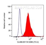 1X10^6 human PBMCs were surface stained with 5 µL CoraLite® Plus 488 Anti-Human CD86 (CL488-65118, Clone:IT2.2) (red) or unstained. Cells were not fixed. Monocytes were gated. {{ $ctrl.currentElement.advancedVerification.fullName }} 验证信息 View more