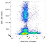 Flow cytometry (surface staining) of CD94 in human peripheral blood. Samples were incubated with CD94 monoclonal antibody (Product # MA562358). {{ $ctrl.currentElement.advancedVerification.fullName }} 验证信息 View more