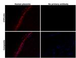 Immunohistochemical analysis of CYP11A1 was performed using formalin-fixed paraffin-embedded human placenta tissue section. To expose the target protein, heat-induced epitope retrieval was performed on de-paraffinized sections using eBioscience™ IHC Antigen Retrieval Solution - Low pH (10X) (Product # 00-4955-58) diluted to 1X solution in water in a decloaking chamber at 110 degree Celsius for 15 minutes. F... View More {{ $ctrl.currentElement.advancedVerification.fullName }} 验证信息 View more