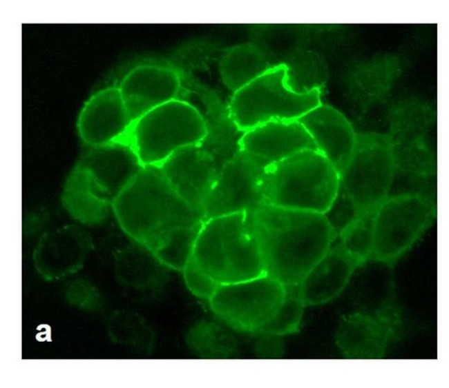 For immunofluorescence analysis, HEK-293 cells were stably transfected with human CALCR. After 24hr of transfection the cells were fixed and permeabilized for detection of CALCR using Anti-Calcitonin Receptor Recombinant Rabbit Monoclonal Antibody (Product # 702621, 1 µg/mL, 1:500 dilution) and labeled with Goat anti-Rabbit IgG (H+L) Superclonal™ Secondary Antibody, Alexa Fluor® 488 conjugate. Panel a) show... View More {{ $ctrl.currentElement.advancedVerification.fullName }} 验证信息 View more