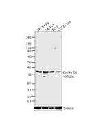 Cyclin D1 (PRAD-1, bcl-1) is one of the key cell cycle regulators, and functions in association with cdk4 and/or cdk6 by phosphorylating the Rb protein. Cyclin D1 is a putative proto-oncogene overexpressed in a wide variety of human neoplasms including mantle cell lymphomas (MCL). In addition, cyclin D1 positively regulates protein phosphorylation, mammary gland epithelial cell proliferation, and fat cell differentiation. In humans, the CCND1 gene encoding cyclin D1 is present on chromosome 11. Cyclin D1 is a cytoplasmic and nuclear protein that is synthesized during G1 phase and assembles with either cyclin-dependent kinase 4 (CDK4) or CDK6 in response to growth factor stimulation. D-type cyclin-CDK complexes act to inactivate the growth-suppressive function of the Rb protein through its phosphorylation, and titrate CDK inhibitors such as p21Cip1 and p27Kip1. Without growth factor-mediated stimulation, Cyclin D1 is unstable, and undergoes ubiquitin-mediated degradation, which is triggered by its phosphorylation. Cyclin D1 destabilization participates in G1/S phase arrest. The Cyclin D1 protein belongs to the highly conserved cyclin family, whose members are characterized by a dramatic periodicity in protein abundance throughout the cell cycle. Cyclins function as regulators of CDK kinases. Different cyclins exhibit distinct expression and degradation patterns which contribute to the temporal coordination of each mitotic event. Cyclin D1 forms a complex with and functions as a regulatory subunit of CDK4 or CDK6, whose activity is required for cell cycle G1/S transition. The Cyclin D1 protein has been shown to interact with tumor suppressor protein Rb and the expression of this gene is regulated positively by Rb. Mutations, amplification and overexpression of this gene, which alters cell cycle progression, are observed frequently in a variety of tumors and may contribute to tumorigenesis. Cyclin D1 has been successfully employed and is a promising tool for further studies in both cell cycle biology and cancer associated abnormalities.