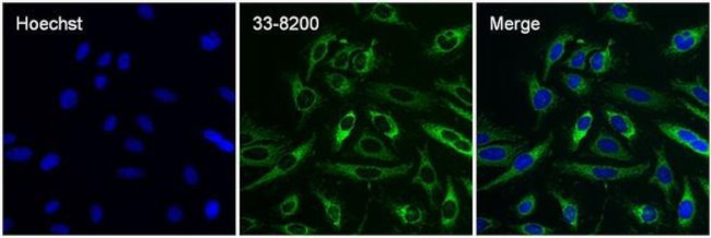 This antibody reacts with native Cytochrome C, but does not recognize denatured cytochrome C. The antibody recognizes a region in the vicinity of amino acid 62 of rat Cytochrome C.
