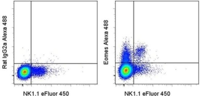 Description: This Dan11mag antibody recognizes Eomesodermin (Eomes), also known as T-box brain 2 (TBR2). Eomes is a T-box transcription factor that is highly homologous to T-bet, which is essential during trophoblast development and gastrulation in most vertebrates. In the immune system, Eomes controls the differentiation of effector and memory CD8+ T cells, as well as natural killer (NK) cells. Expression of Eomes in these cells correlates with high expression of CD122, the common beta-chain of the IL-2R and IL-15R.