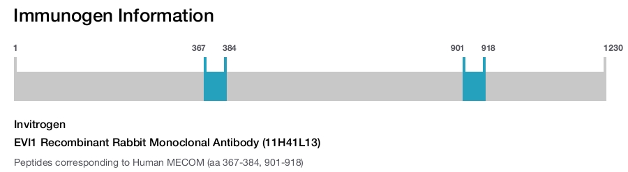 EVI1 (MECOM) is a transcriptional regulator and oncoprotein that may be involved in hematopoiesis, apoptosis, development, cell differentiation, and proliferation. It can interact with CTBP1, SMAD3, CREBBP, KAT2B, MAPK8, and MAPK9. The EVI1 gene can undergo translocation with the AML1 gene, resulting in overexpression of the EVI1 gene and the onset of leukemia. Several transcript variants encoding a few different isoforms have been found for this gene.