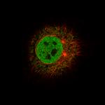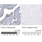 Forkhead-box J1 (FOXJ1) is a 421-amino acid transcription factor that suppresses T cell activity and spontaneous autoimmunity, through the repression of NF B activity. FOXJ1 also inhibits the humoral immune response in B cells. FOXJ1 deficiency in B cells results in spontaneous and accentuated germinal center formation and is implicated in the development of pathogenic autoantibodies and accentuated responses to immunizations. Abnormal expression of FOXJ1 may be associated with autoimmune diseases and/or other inflammatory diseases. FOXJ1 is also required for cilia formation and left-right axis determination because it increases calpastatin expression, a protein necessary for the ability of basal bodies to anchor to the apical cytoskeleton. FOXJ1 expression may function as an early marker of epithelial cell differentiation, recovery, and function.