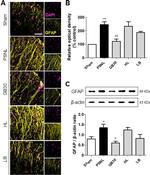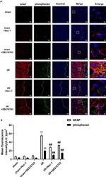 GFAP (Glial fibrillary acidic protein) is a member of the class III intermediate filament protein family. GFAP is heavily and specifically expressed in astrocytes and certain astroglia of the central nervous system, in satellite cells of peripheral ganglia, and in non-myelinating Schwann cells of peripheral nerves. In addition, neural stem cells strongly express GFAP. Antibodies to GFAP are very useful as markers of astrocytic cells. In addition, many types of brain tumor, presumably derived from astrocytic cells, heavily express GFAP. GFAP is also found in the lens epithelium, Kupffer cells of the liver, in some cells in salivary tumors and has been reported in erythrocytes. GFAP is used as a marker to distinguish astrocytes from other glial cells during development. Mutations in this gene cause Alexander disease, a rare disorder of astrocytes in the central nervous system. Alternative splicing of the GFAP gene results in multiple transcript variants encoding distinct isoforms.