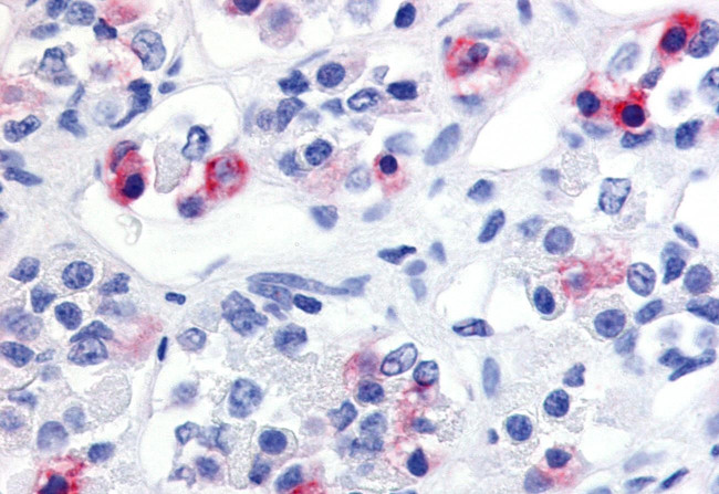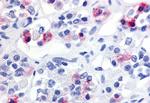For IHC(P), use heat induced antigen retrieval in pH 6.0 citrate buffer. After incubation with the primary antibody, slides were incubated with biotinylated secondary antibody, followed by alkaline phosphatase-streptavidin and chromogen.