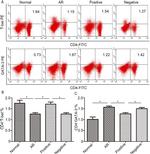 Knockdown of GATA-3 was achieved by transfecting MCF7 cells with GATA-3 specific siRNAs (Silencer® select Product # s5600; s5599). Immunofluorescence analysis was performed using untransfected MCF7 (panels a, d), transfected with non-specific scrambled siRNA (panels b,e) and transfected with GATA-3 specific siRNAs (panel c,f). The cells were labeled with GATA-3 Monoclonal Antibody (TWAJ) (Product # 14-9966-80) at 5 µg/mL in 0.1% BSA, incubated at 4 degree Celsius overnight, followed by labelling with Goat anti-Rat IgG (H+L) Superclonal™ Se... View More {{ $ctrl.currentElement.advancedVerification.fullName }} 验证信息 View more