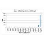 This antibody reacts to Histone H3 dimethylated at Lysine 79 (K79me2). No cross reactivity with monomethylated Lysine 79(K79me1) or trimethylated Lysine 79 (K79me3), or other methylation in histone H3.