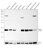 Western Blot was performed using Anti-HOXC6 Polyclonal Antibody (Product # PA5-68513) and a 26 kDa band corresponding to Homeobox protein Hox-C6 was observed across the tissues tested. Tissue extracts (30 µg lysate) of Rat Ovary (Lane 1), Rat Skeletal Muscle (Lane 2), Rat Kidney (Lane 3), Rat Stomach (Lane 4), Rat Heart (Lane 5), Rat White Adipose (Lane 6), Rat Mammary gland (Lane 7) and Rat Adrenal gland (Lane 8) were electrophoresed using NuPAGE™ 10% Bis-Tris Protein Gel (Product # NP0301BOX). Resolved proteins were then transferred onto... View More {{ $ctrl.currentElement.advancedVerification.fullName }} 验证信息 View more