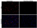 Ionized calcium-binding adapter molecule 1 (IBA1), also known by its gene name AIF1, is a protein expressed predominantly by microglia in the brain and spinal cord. This protein belongs to the EF-hand calcium-binding protein family and plays a crucial role in microglial activation and migration in response to brain injury or neuroinflammation. IBA1's function is integral to microglial motility and phagocytic activity, facilitating the cellular response to pathogenic stimuli and promoting tissue homeostasis and repair in the central nervous system. IBA1 serves as a reliable marker for activated microglia in various neurological disorders, including Alzheimer's disease, Parkinson's disease, and multiple sclerosis, where increased expression correlates with disease progression and severity. The protein's structural features enable it to bind calcium ions, inducing conformational changes that activate signaling pathways essential for microglial function. Its expression is highly regulated by inflammatory cytokines, underpinning its role in neuroimmune responses. Due to its specific expression in microglia during pathological conditions, IBA1 is widely used in research as a marker to study microglial status and activity, and it remains a focal point for understanding microglial involvement in neurodegenerative diseases.