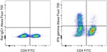 Mouse splenocytes were stimulated with Concanavalin A (Product # 00-4978) for 2 days then restimulated with Cell Stimulation Cocktail (plus protein transport inhibitors) (Product # 00-4975) for 5 hours. Cells were then surface stained with Anti-Mouse CD4 FITC (Product # 11-0042), followed by intracellular staining with 0.03 µg of Anti-Mouse IFN gamma Alexa Fluor 700 using the Intracellular Fixation and Permeabilization Buffer Set (Product # 88-8824) and protocol. Cells in the lymphocyte gate were used for analysis. {{ $ctrl.currentElement.advancedVerification.fullName }} 验证信息 View more