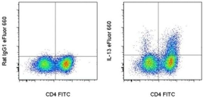 Applications Tested: This eBio13A antibody has been tested by intracellular staining and flow cytometric analysis of Th2 polarized mouse splenocytes. This can be used at less than or equal to 0.25 µg per test. A test is defined as the amount (µg) of antibody that will stain a cell sample in a final volume of 100 µL. Cell number should be determined empirically but can range from 10^5 to 10^8 cells/test. It is recommended that the antibody be carefully titrated for optimal performance in the assay of interest.