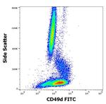 The integrin alpha 4 (also known as CD49d and ITGA4) belongs to the integrin alpha chain family of proteins. Integrins are heterodimeric integral membrane proteins composed of an alpha and beta chains. Alpha4 chain associates with either beta1 or beta7 chain. It has been demonstrated that the putative ligand-binding sites of both integrin alpha4beta1 and alpha4beta7 is located on the alpha4 chain. These ligands included Madcam, VCAM, and fibronectin. Madcam is known as the principal ligand for integrin alpha4beta7. Recently it was also demonstrated that HIV-1 envelope can mimic Madcam by binding to and signaling though integrin alpha4beta7, the gut mucosal homing receptor for peripheral T cells.