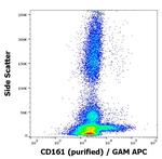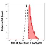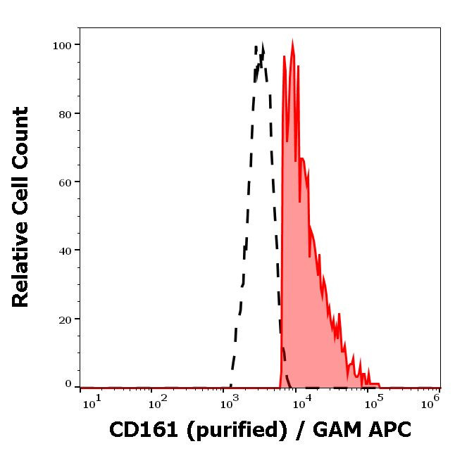 KLRB1 (Killer cell lectin like receptor subfamily B, member 1, CD-161) protein is classified as a type II membrane protein because it has an external C terminus. KLRB1 cell surface antigen is expressed by almost all NK cells and in a small subset of CD3+ve T cells. KLRB1 is a homodimeric cell surface protein, comprising two chains with molecular weights ranging from 40-44kDa. KLRB1 plays an inhibitory role on natural killer (NK) cells. Activation of KLRB1 leads to acid sphingomyelnase/SMPD1 stimulation and an increase in intracellular ceramide. Moreover, there is also an activation of AKT1/PKB and RPS6KA1/RSK1 kinase stimulation, and T cell proliferation by anti-CD3. KLRB1 acts as a lectin that binds to the terminal carbohydrate Gal-alpha(1,3)Gal epitope and to the N-acetyllactosamine epitope. KLRB1 also binds to CLEC2D/LLT1 as a ligand, and inhibits NK cell-mediated cytotoxicity as well as interferon-gamma secretion in target cells. The KLRB1 protein contains an extracellular domain with several motifs characteristic of C-type lectins, a transmembrane domain, and a cytoplasmic domain.