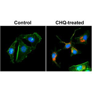 LC3B (Autophagy Marker Light Chain 3B, MAP1A/MAP1B LC3 B) in humans, is encoded by the gene MAP1LC3B (Microtubule-associated proteins 1A/1B light chain 3B). LC3B is associated with microtubule assembly and important is in neurogenesis. Recent studies indicate that LC3B plays a vital role in autophagy, a process that involves the bulk degradation of cytoplasmic component. Three human LC3 isoforms undergo post-translational modifications during autophagy. Macroautophagy is the major inducible pathway for the general turnover of cytoplasmic constituents in eukaryotic cells, it is also responsible for the degradation of active cytoplasmic enzymes and organelles during nutrient starvation. Macroautophagy involves the formation of double-membrane bound autophagosomes which enclose the cytoplasmic constituent targeted for degradation in a membrane bound structure, which then fuse with the lysosome (or vacuole) releasing a single-membrane bound autophagic bodies which are then degraded within the lysosome (or vacuole). LC3B is a microtubule-associated protein that mediate the physical interactions between microtubules and components of the cytoskeleton. LC3B may play a role in processes involving cancer, aging, metabolic and neurodegenerative disorders and cardiovascular/pulmonary diseases.