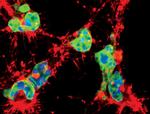 Immunofluorescent analysis of Cleaved Lamin A in HeLa cells, staurosporine-treated, using a Cleaved Lamin A polyclonal antibody (Product # PA5-17838) (green). Actin filaments are labeled with a fluorescent red phalloidin. DNA is labeled using a fluorescent blue dye. {{ $ctrl.currentElement.advancedVerification.fullName }} 验证信息 View more