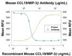 In direct ELISAs, less than 30% cross-reactivity with recombinant rat CCL19/MIP-3 beta is observed and less than 10% cross-reactivity with recombinant human CCL19/MIP-3 beta is observed.